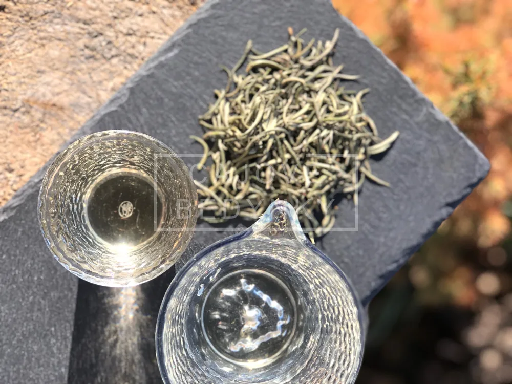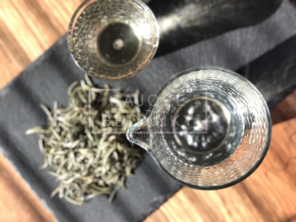 - Jde o čistě tipsový čaj. Tedy jen ten poslední nejmladší ještě nerozvinutý lístek na konci větvičky čajovníku, ve kterém je nejvíce ceněných látek. Říká se jim tips / buds nebo také jehly / needles. Byly sklizené velmi droboučké (mlaďounké). Jejich velikost můžeš porovnat například se Stříbrnými jehlami z Číny.
