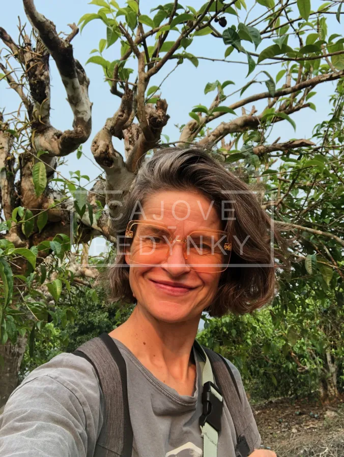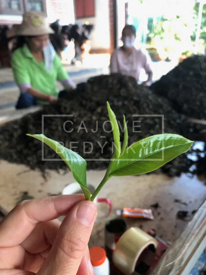 - O tomto farmáři z malé čajové oblasti v horách na severu Thajska jsem se dozvěděla od jisté čínské čajové influencerky. Vesnici jsem našla. Teda původně jsem byla asi 30 km mimo. Ale to je teď vedlejší. Pak jsem se ale ocitla už v té správné vesnici. Různě to tam probloudila, ochutnala kde co, ale na onoho farmáře jsem nenarazila. Měla jsem screen shot s jeho obličejem z videa oné influencerky. Ale nikdo z těch koho jsem se ptala ho neznal. Ani v restauraci, ani starosta, ani běžní občané. Tak jsem se už smířila s tím, že je asi odjinud a nějak mě to netrápilo, protože už jsem jeden čajový kšeftík domluvila o dům dál. Ještě jsem to jen tak cvičně zkusila poslední den a ejhle! Dotyčná ho znala a zavezla mě přímo k němu domů. Farmář sice doma nebyl, ale byla tam jeho žena, která se čajům věnuje podobně dlouho jako on. Pocházejí z oblasti Lincang v čínském Yunnanu a emigrovali do Thajska asi před 50 lety. Vzala mě k nim do továrničky. Byla nádherná. V kopcích mezi divokými čajovníky. Čisťounká. Všichni zaměstnanci byli naprosto usměvaví a v pohodě. I ti, kteří "jen" sbírali čaj. Cejtila jsem se tam fakt skvěle a jejich čaje mě nadchly. Tak snad nadchnou i Tebe.