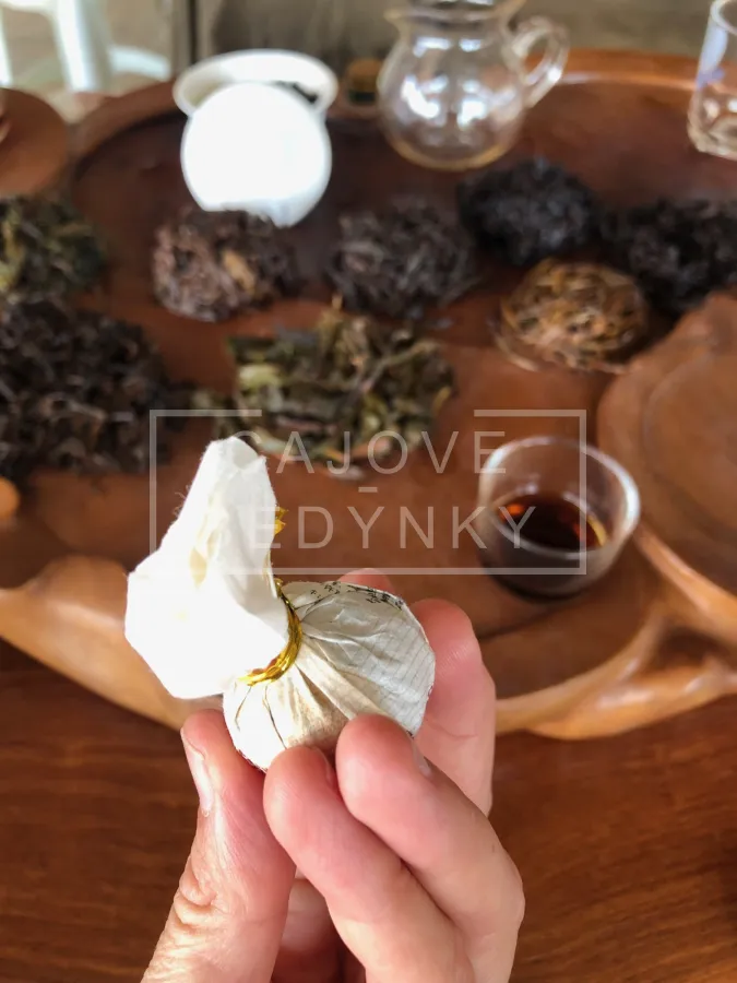 - Vzorky - Chceš vyzkoušet tento zralý pu erh z divokých čajovníků? Za každých 800,- Kč v objednávce máš nárok na jednu kuličku. Do této hodnoty se započítávají pouze sypané čaje tedy NIKOLI doprava, předplatné Čajových Bedýnek, dárkové či degustační balíčky, čajové kurzy či jiné „nefyzické“ produkty, naše výběrová káva). Svůj výběr vzorku / vzorků napiš do objednávkového formuláře do příslušné kolonky.